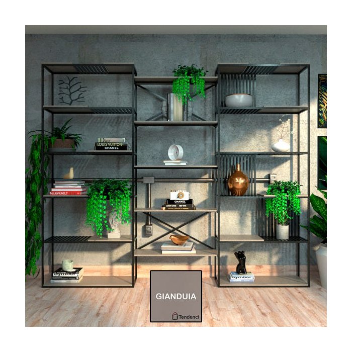 Estante De Metalon e Madeira para Sala de Estar Ambience - Cinza - 3,00x0,40x2,00m