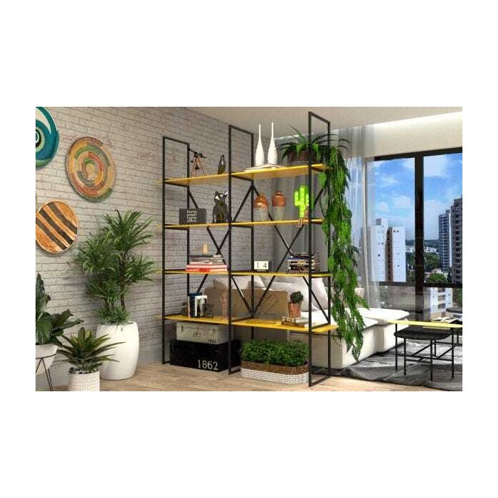 Estante De Metalon e Madeira para Sala de Estar Estante Classic Amarelo Gema - 2,00x0,40x2,50m