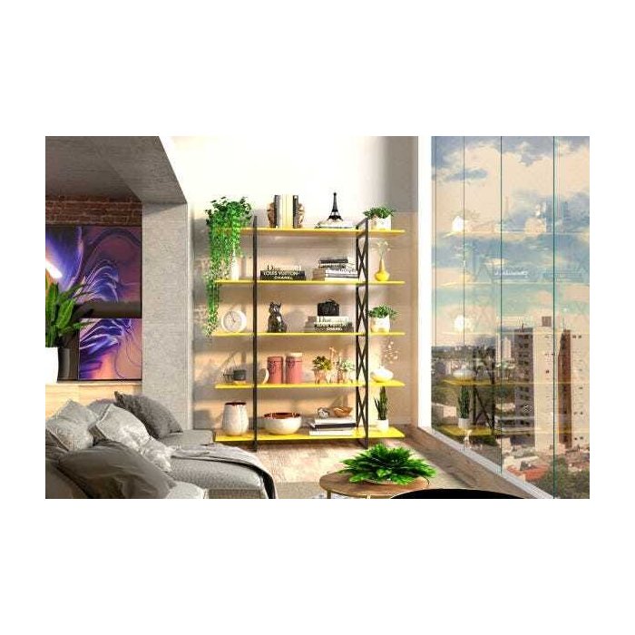 Estante de Metalon e Madeira para Sala de Estar Expanse Amarelo Gema - 1,50x0,40x2,50m
