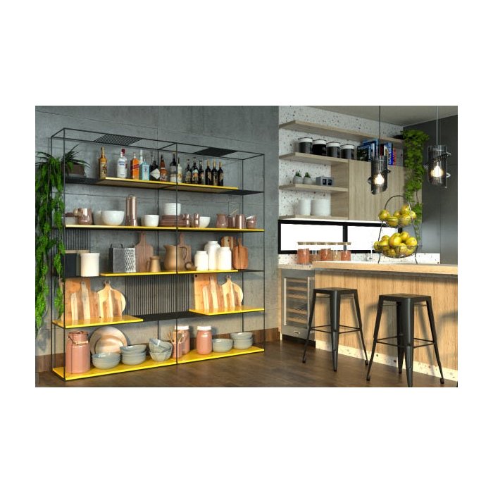 Estante De Metalon para Sala Exuberance - Coleção Aquarela - Amarelo Gema - 2,00x0,40x2,00m