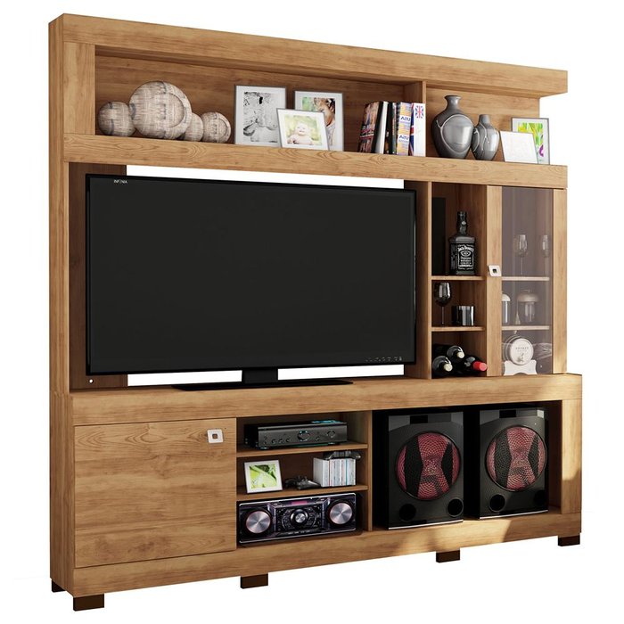 Com 207 cm de altura x 200 cm de largura x 39,2 cm de profundidade poderá instalar TV’s de até 55 polegadas. Sua porta em vidro garantirá elegância e espaço para