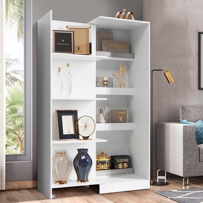 Estante Dupla Compartimento Escondido Branco Shop Jm Branco