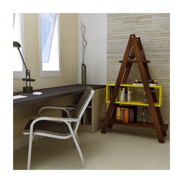 A Estante Escada Decor Suze foi criada pensando na decoração do ambiente mas também com muita utilidade, suas estruturas em Imbuia e o Nicho na cor Amarela a deixa com muito estilo, pode ser usada em varandas, áreas gourmet, sala de estar ou até mesmo em seu escritório.