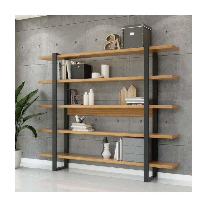 Estante Escritório 5 Prateleiras Preto Freijó Pradel