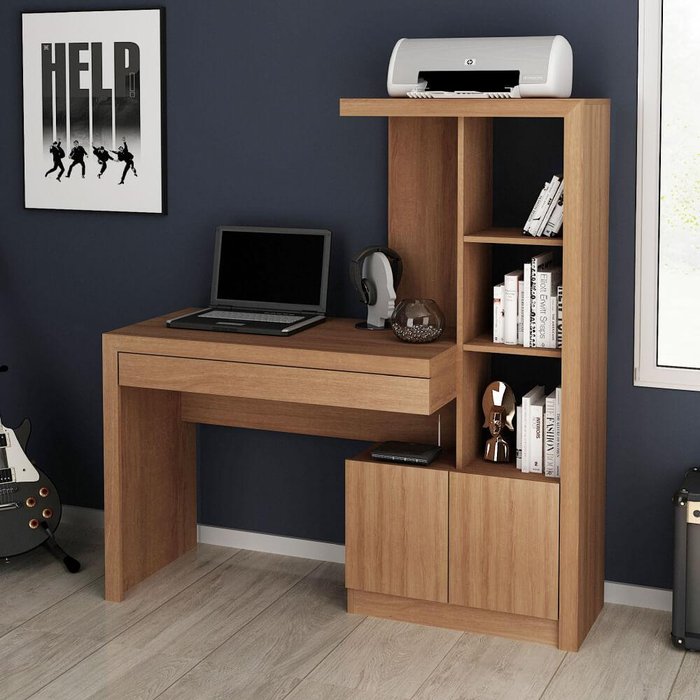 A Estante Escrivaninha é uma estação compacta de trabalho e multifuncional. Um móvel único, com estrutura completa para um escritório organizado, onde todos os objetos podem ser guardados, acomodados de forma prática ao dia-a-dia. Com mesa para o notebook, gaveta para os documentos e nichos para os livros, objetos de decoração e impressora. Conta com 2 portas, 3 nichos e 1 gaveta com muito espaço. Um jeito inteligente compor sua área de estudos e trabalho.