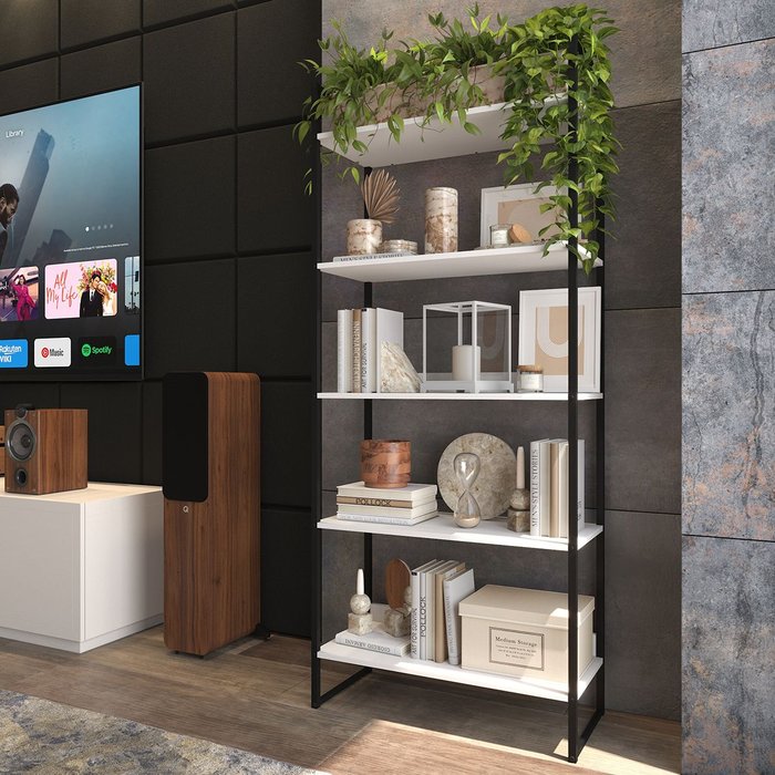 Estante Estilo Industrial Metal Madeira 190x80cm Branco com Preto Branca