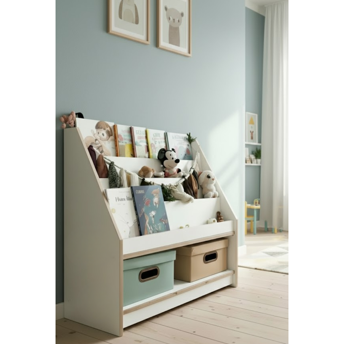 Oferece espaço suficiente para armazenar uma variedade de livros e brinquedos, mantendo-os sempre à mão e de forma arrumada. Isso não apenas torna mais fácil para as crianças encontrar o que desejam, mas também encoraja a autonomia e responsabilidade desde cedo.