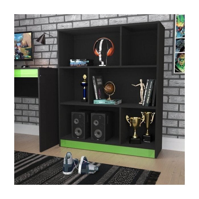Estante Gamer 6 Nichos B25 Preto/Verde