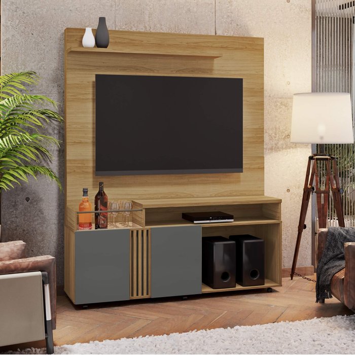 Itens Inclusos:Portas: Sim Prateleiras decorativasRodízios aparenteDetalhe ripadoBar decorativoEspaço TV: 1500mm x 1060mm (LxA)