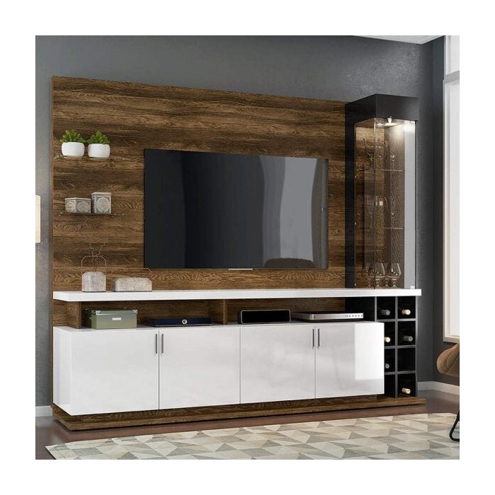 Estante Home Cristaleira para TV até 55 Polegadas com Adega Vivace Colibri Móveis Canela Rústico/Branco Neve/Preto