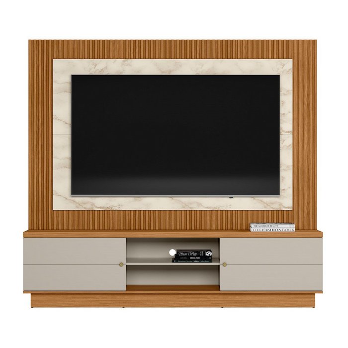 O Home Maringá é perfeito para você que busca sofisticação para a sua sala. Para TV de até 70 polegadas, conta com duas portas de correr com detalhes de frisos, dois puxadores de alumínio e uma prateleira para dispor objetos decorativos e eletrônicos. O painel ripado deixa a sala ainda mais atraente!