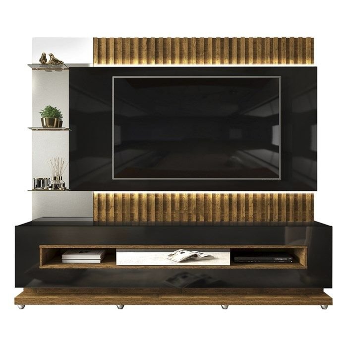 Estante Home para Tv 60 Polegadas Lumus Preto Gloss Tronco Ripado Dj Moveis
