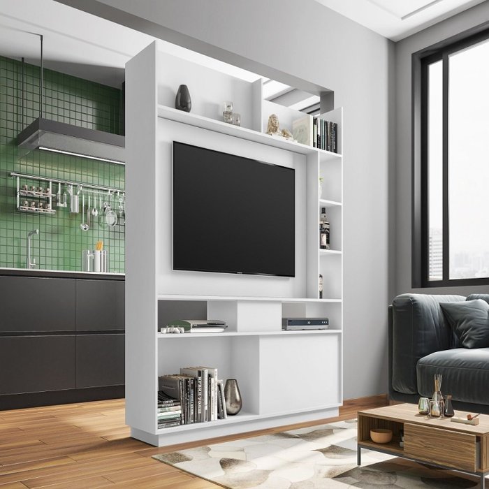 Estante Home para TV até 50 Polegadas 4 Nichos Suporte Pivotante Divisor de Ambientes Versus Espress Branco Velluto