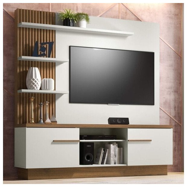 Estante Home para TV até 55 Polegadas Itaipu Linea Brasil Off White/Nogueira
