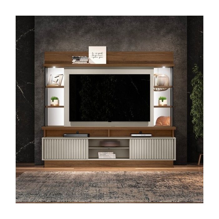 O Home Salvador é perfeito para deixar sua sala elegante e sofisticada. Produto simétrico, para TV de até 60 polegadas, conta com duas portas deslizantes com detalhes no ripado proporcionando otimização de espaço. Moderno e com design industrial, conta com espaços para acomodar aparelhos eletrônicos e ainda dois nichos com luminárias de Led para acomodar suas decorações preferidas. Com dois metros e dezoito de largura o painel Home Salvador é ideal para você que busca requinte sem abrir mão da funcionalidade.
