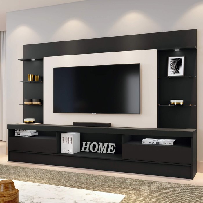 Home Barcelona Moderno e sofisticado deixa sua sala mais prática e estilosa, design inovador,com acabamento inovado! Produto Mixto em MDF,Painel integrado a bancada ( Não precisa furar parede),Gavetas com corrediças telescópicas reforçada .Nele você encontra toda modernidade que sua casa merece!