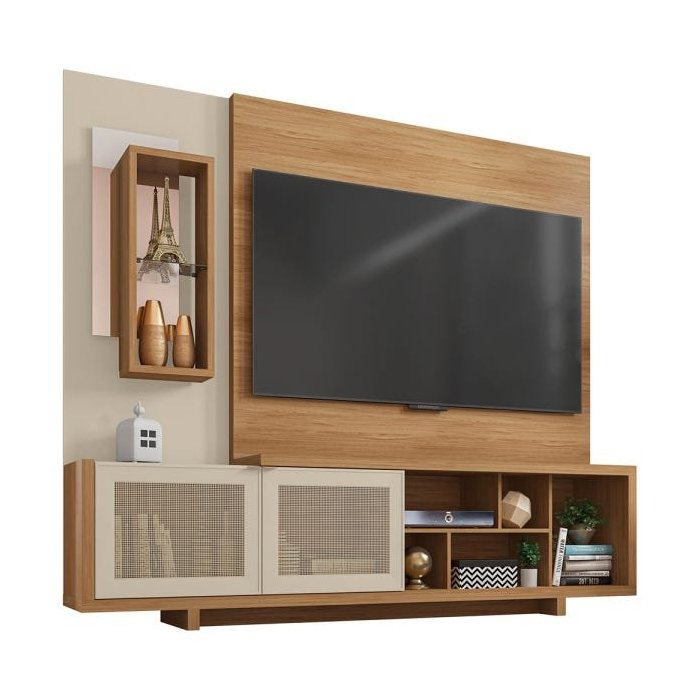 Estante Home Para TV até 65 Polegadas 2 Portas Linus Caemmun Buriti (Fosco) / Off White (Brilho)