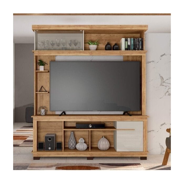 Estante Home para TV até 65 Polegadas Euphoria Caemmun Buriti/Off White