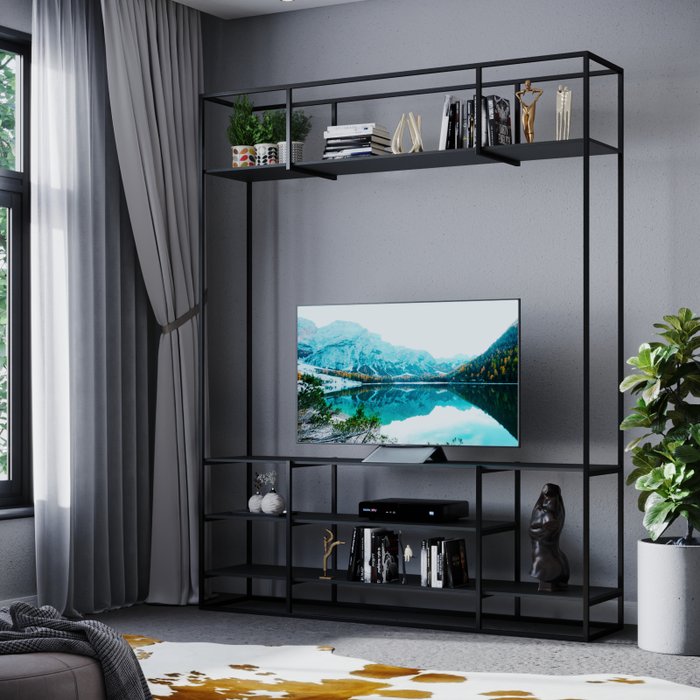 Estante Home para TV Moderna Estilo Industrial Silver 150x40x200 Cor mdf Preto