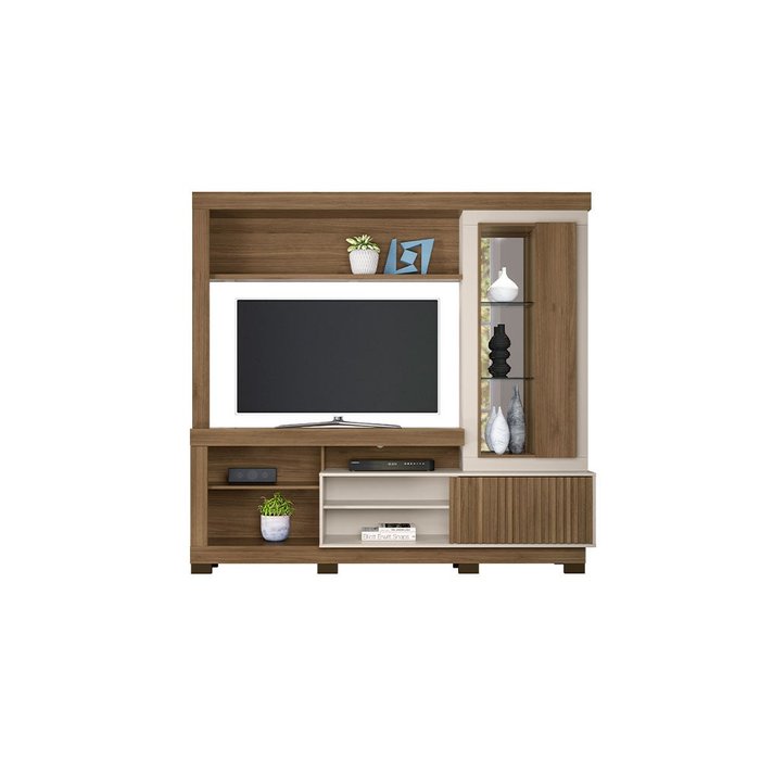 Estante Home Theater Bahia com Pés para TVs até 55 Polegadas Línea Brasil Avelã com Off White