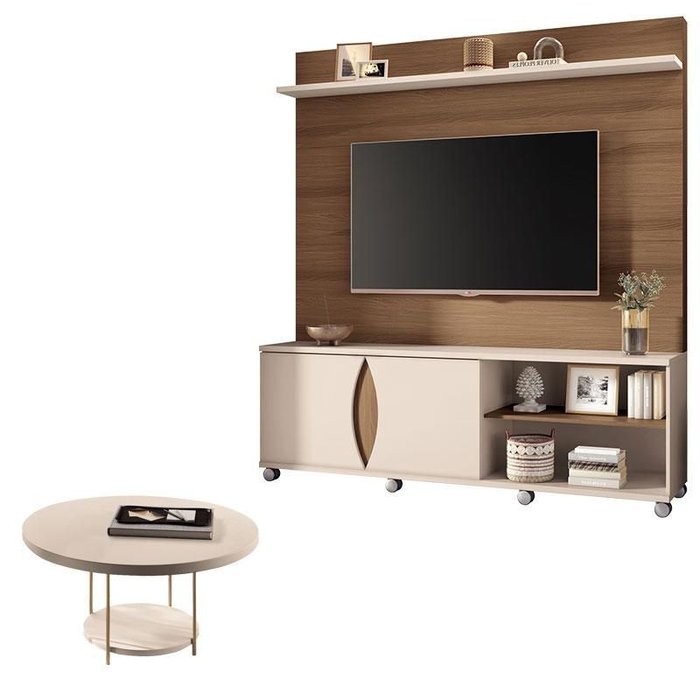 Estante Home Theater Luxor Castanho Off White e Mesa de Centro sky Off White- HB Móveis