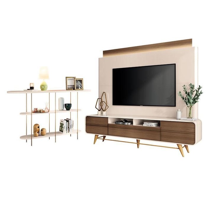 Estante Home Theater Nobre Off White Castanho– HB Móveis