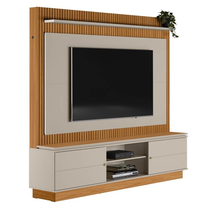Estante Home Theater para TV 75 Pol. 215cm Guape L06 Nature/Off White - Mpozenato