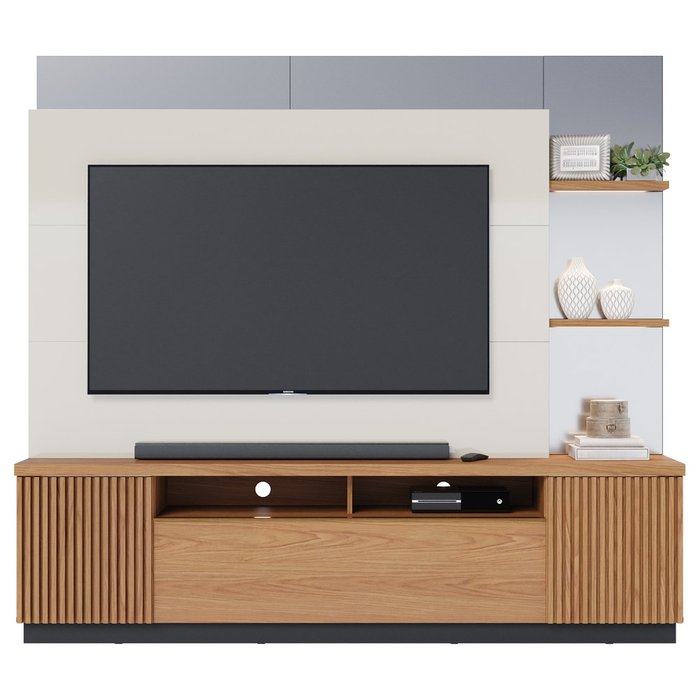 Estante Home Theater para TV até 70 Pol. 210cm Niterói Freijó/Off White/Preto Fosco - Colibri