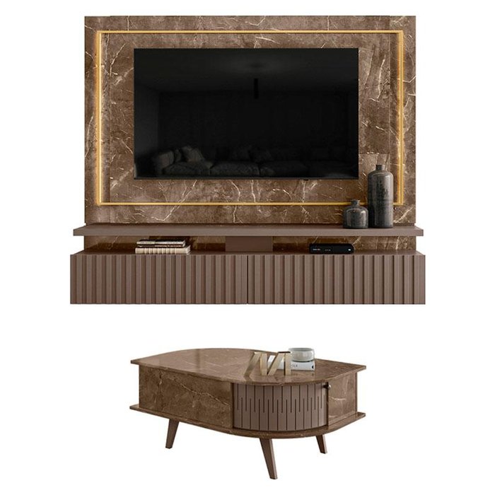 Estante Home Theater Suspenso Gaia com Mesa de Centro Indianápolis Imperial Sépia – Madetec