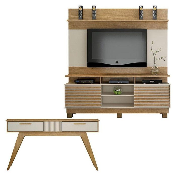 Estante Home Theater Texas E Aparador Lívia Cinamomo Off White - Valdemóveis