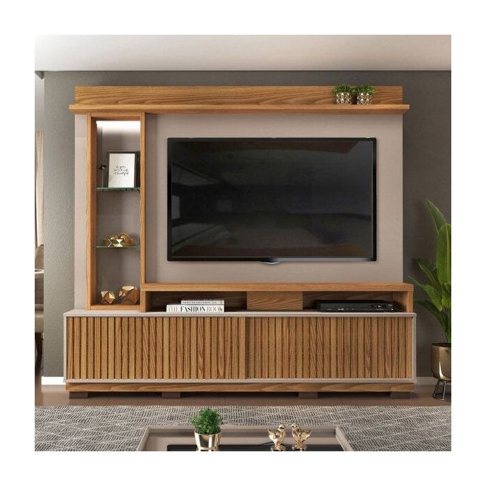 Características como seu nicho de 25mm com espelhos e prateleiras de vidro, atribuem requinte e sofisticação ao seu ambiente. Além disso, ele também tem uma fita de LED iluminando a parte superior do nicho, trazendo ainda mais elegância a este lindo móvel, que suporta TVs de até 65 polegadas.
