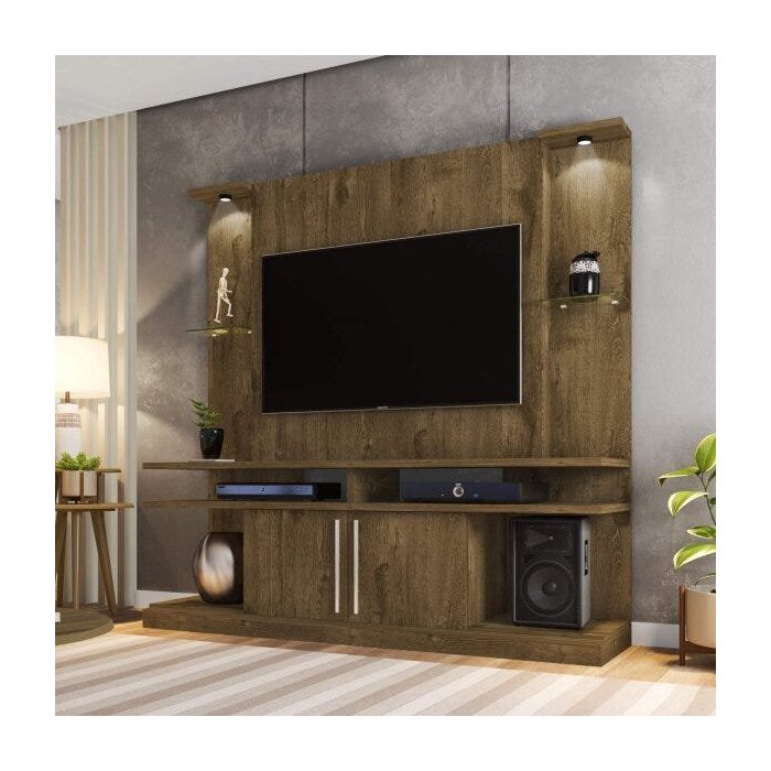 Estante Home York com LED e Prateleiras de Vidro Tradicional Moderno Móveis Bechara Madeira Rústica