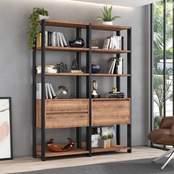 Estante Industrial 1 Porta 2 Gavetas 8 Prateleiras 183cmx140cm Preto/Solanum