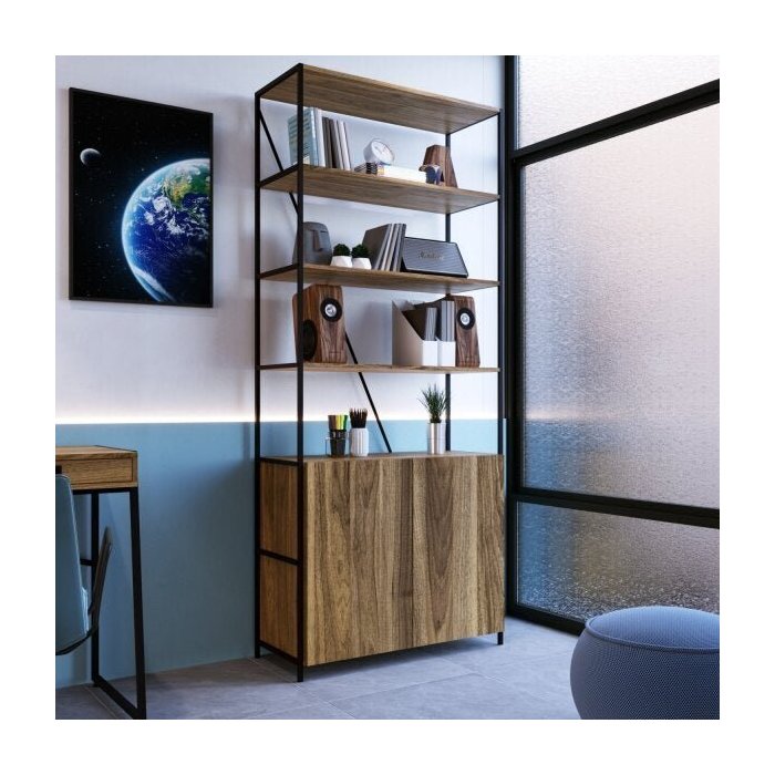 Estante Industrial 2 Portas Steel Wood preto/noce oro