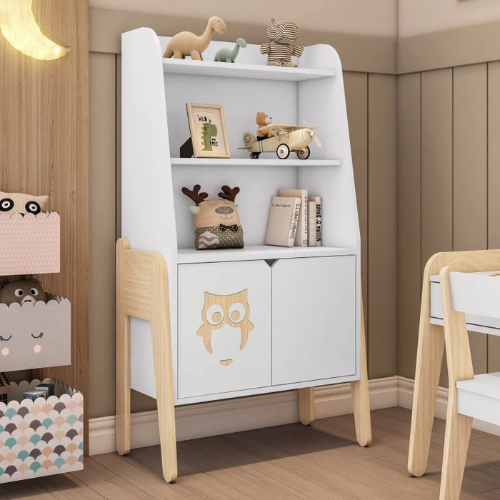 Estante Infantil 3 Prateleiras e 2 Portas Corujinha Casatema MadeiraOriginals