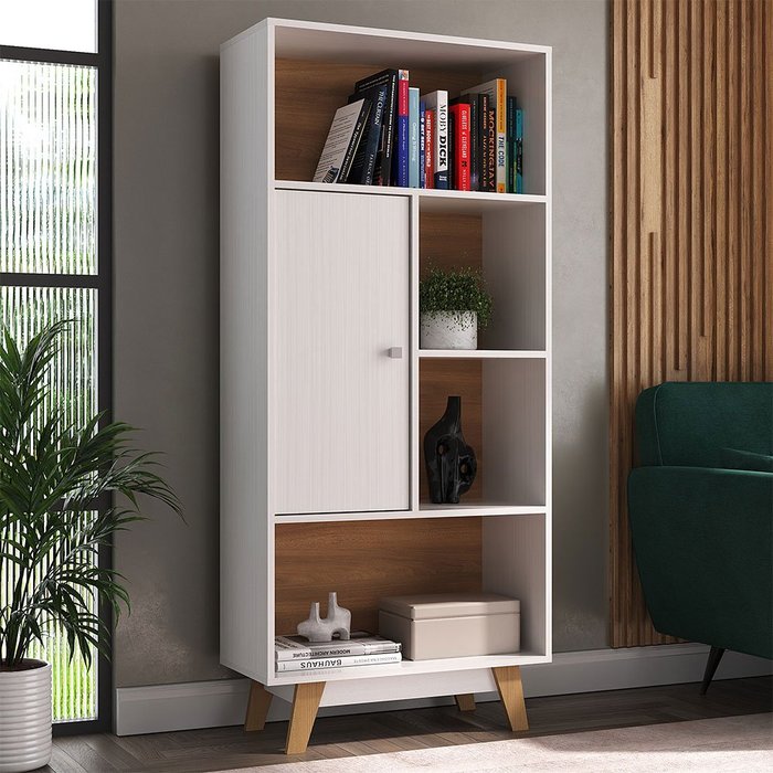 Estante Livreiro 1 Porta 4 Nichos Offfice Branco/nogal - Hecol