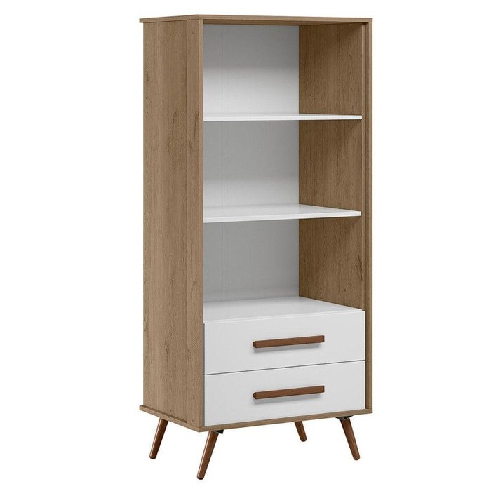 Estante Livreiro 2 Gavetas Pés Retrô Carvalho Toq/branco Carvalho Toq/branco