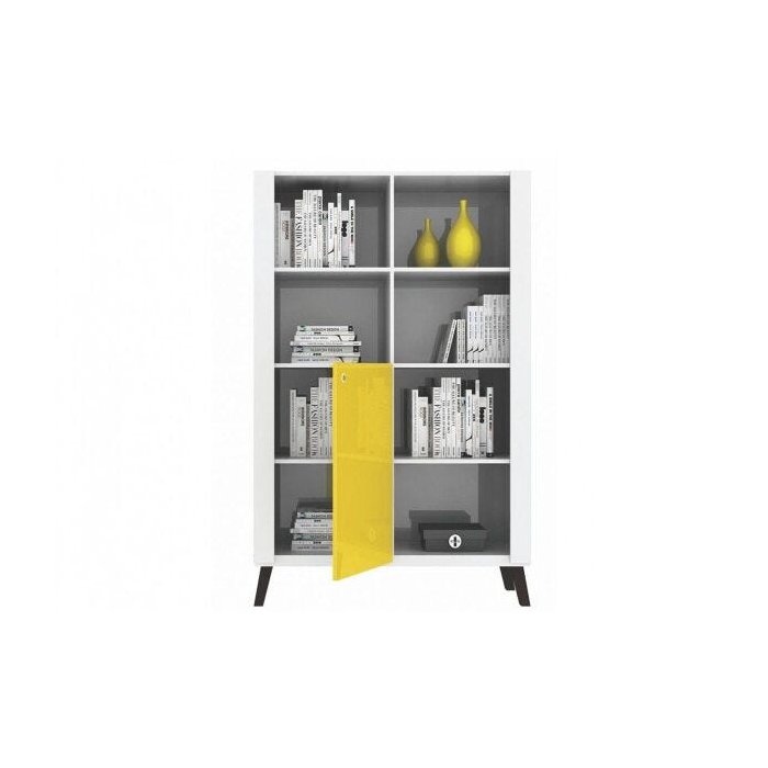 Estante Livreiro Alpha 1 Porta - Colibri - Branco Neve/Amarelo