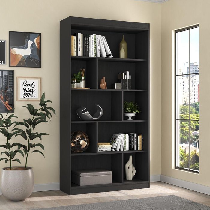 A Estante para Livros contém 9 nichos. Com altura de 181cm, largura de 93cm e 30cm de profundidade. É perfeito para ambientes de Sala de Estar de todos os tamanhos.