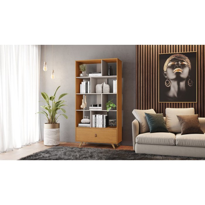 Estante Livreiro Giga com Nicho e Gaveta:cinamomo / Off