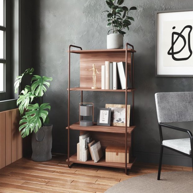 Estante Livreiro Maior Média com Tubos Quadrados de Aço Carbono Pintado e Prateleiras de Madeira MDP Frame Pozza Móveis Corten/Castanho