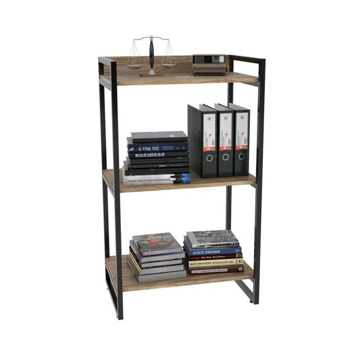 Estante Livreiro Prisma Estilo Industrial 60cm 3 Prateleiras Carvalho - Mpozenato