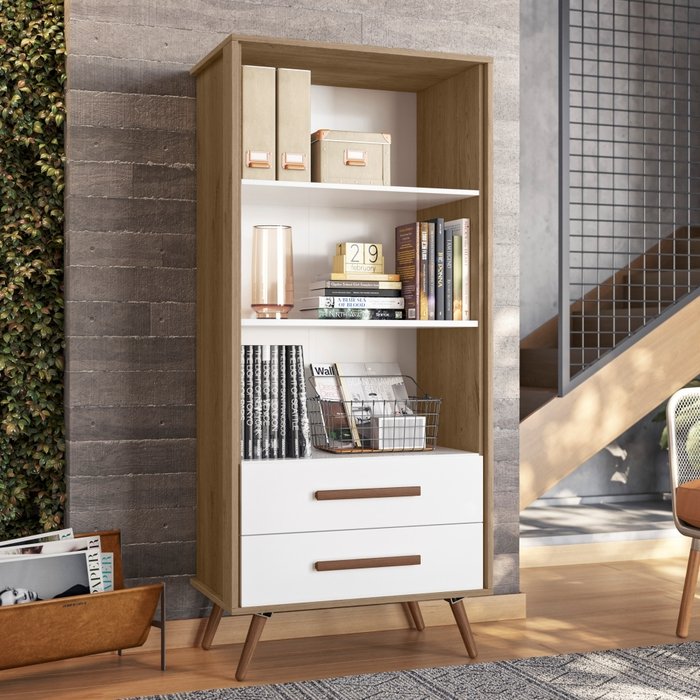 Estante Livreiro Retrô Natalie Carvalho/Branco 2 Gavetas