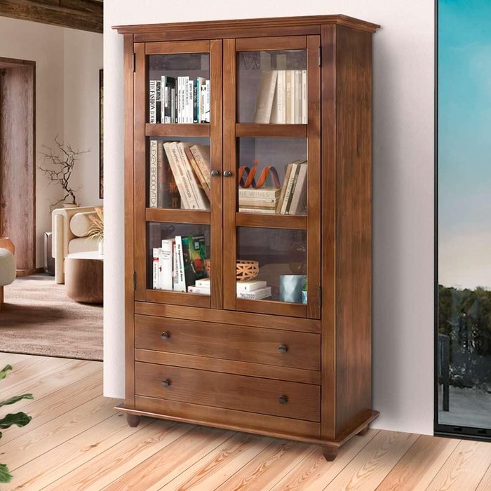 Dimensões do produto: Largura 100 cm; Profundidade 45 cm; Altura 170 cm.Itens Inclusos: 1 cristaleira- 100% madeira maciça Pinus- 2 portas com vidro- 2 prateleiras internas- 2 gavetas com corrediças telescópicas- Puxadores em metal- Acabamento em verniz fosco- Prateleiras suportam até 15 kg- Gavetas suportam até 10 kg Complexidade da montagem: Média, pode ser montado por mais de uma pessoa e/ou necessite de maior conhecimento para montagem.Recomendações de uso, manutenção e limpeza: Limpar com flanela ou pano macio seco, não utilizar produtos abrasivos, desengordurantes, álcool ou solvente. Não expor o produto diretamente a luz solar e à umidadeGarantia: 3 mesesOBS: Foto meramente ilustrativa, objetos, utensílios e decoração não fazem parte do produto.