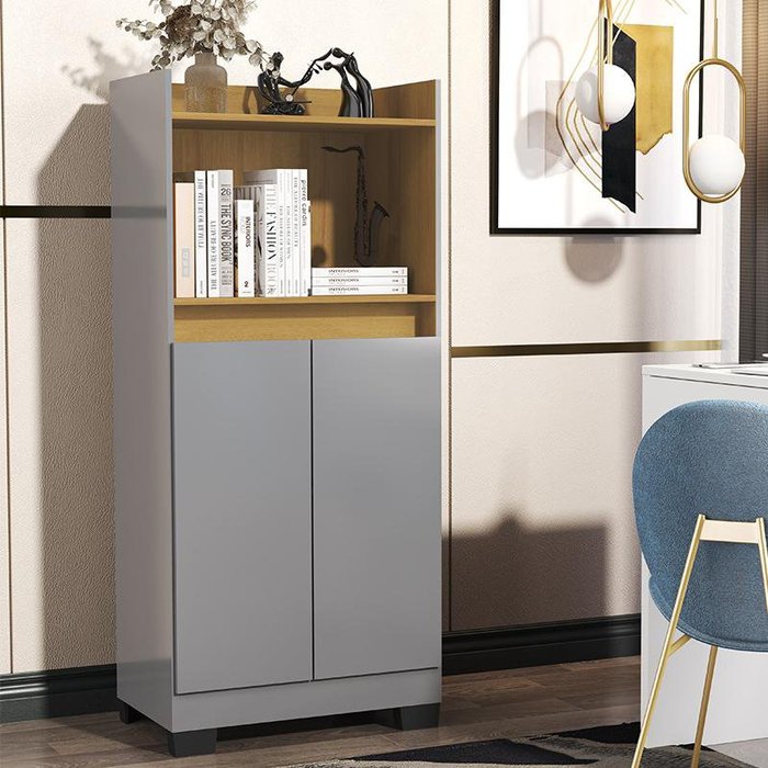 Estante Livro Organizador Escritorio Armario Duque 2 Portas Onix/Mel