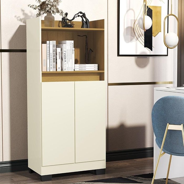 Estante Livro Organizador Escritorio Armario Duque 2 Portas Perola/Mel