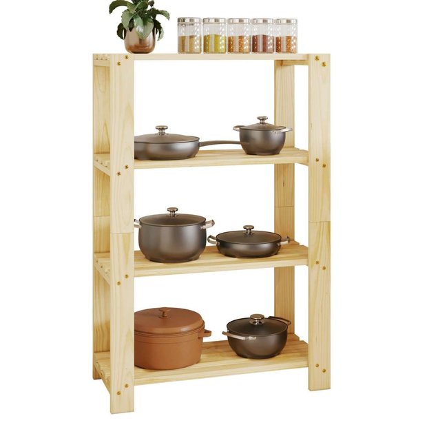 Estante Multiuso em Madeira Pinus – 4 Prateleiras, Versátil, Reforçada e Decorativa