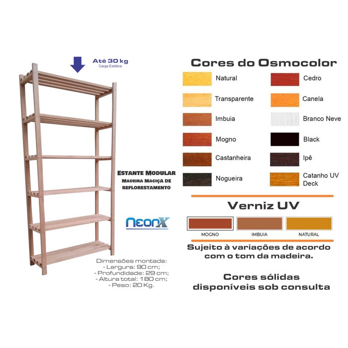 Estante Modular 6 Prateleiras Madeira 180x90x29 Cm Pintada Neonx Osmocolor Nogueira Semi Tr