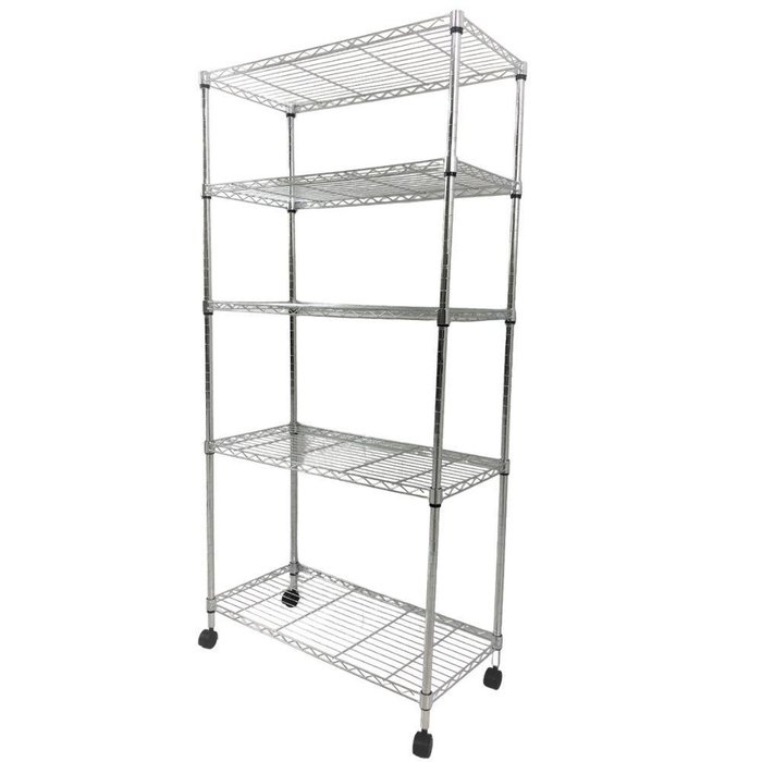 Estante de Aço Inox 5 PrateleirasPRATELEIRA DE ARAME DURÁVEL PARA SERVIÇOS PESADOS - As prateleiras de arame com rodas são feitas de ferro de qualidade e são revestidas com cromo. A camada cromada possui dureza e resistência ao desgaste extremamente altas, o que pode prolongar a vida útil da prateleira, e a capacidade de carga de cada camada de prateleiras suporta 20Kg.
