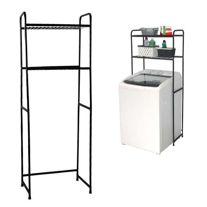 01 Estante Multiuso Lavanderia 2 Níveis Preta.